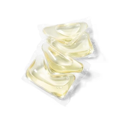 - Pouch of dual-compartment clear pods with concentrated liquid laundry detergent