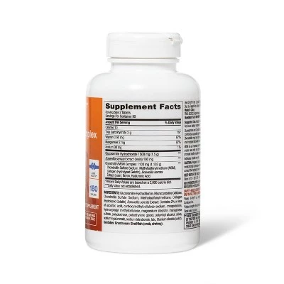 To promote joint and cartilage condition and help maintain healthy joints, add up & up™ Glucosamine Chondroitin Complex to your daily routine as a dietary supplement. This triple-strength formula may support joint flexibility and mobility, and it comes in a coated tablet format that makes it easier to swallow. The 180-count bottle contains 90 days of servings to help support your joint health and flexibility for several months of use.