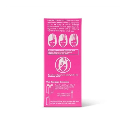 Compare to Women’s Rogaine active ingredient. Up&Up Hair Regrowth Treatment For Women, Minoxidil Topical Solution 2 Percent contains minoxidil, the Number 1 dermatologist recommended active ingredient for hair regrowth (of U.S. physicians surveyed by an independent market research firm). Minoxidil works beneath the surface to reactivate hair follicles to stimulate hair regrowth on top of the scalp. Made for women who have a general thinning of hair on the top of the scalp. Unscented.