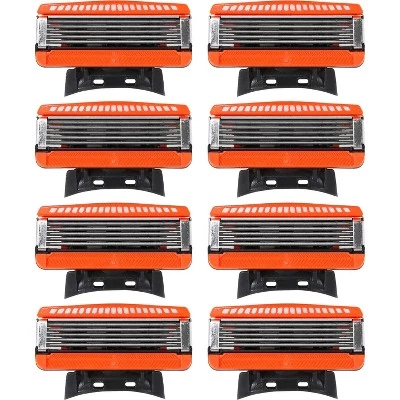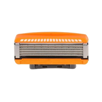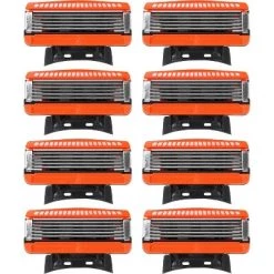 Get premium affordable refill cartridges that fit your Fusion® handle and budget. Featuring five coated blades for a close, comfortable shave, the cartridges also combine unique blade guards and vitamin E-infused lubricating strips to help reduce skin irritation. The built-in trimmer lets you shape your goatee or sideburns and makes it easy to shave hard-to-reach areas, plus the whole cartridge is designed to last up to one month for a noticeably clean shave that keeps on giving. Always have fresh blades on hand when you pick up the Men’s Five-Blade Replacement Cartridges 8-Count from up & up™br />100% Satisfaction Guaranteed.