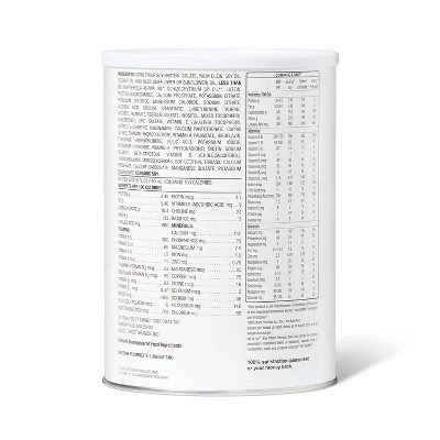 - Vitamin E, Lutein and DHA, iron, 100 percent soy protein